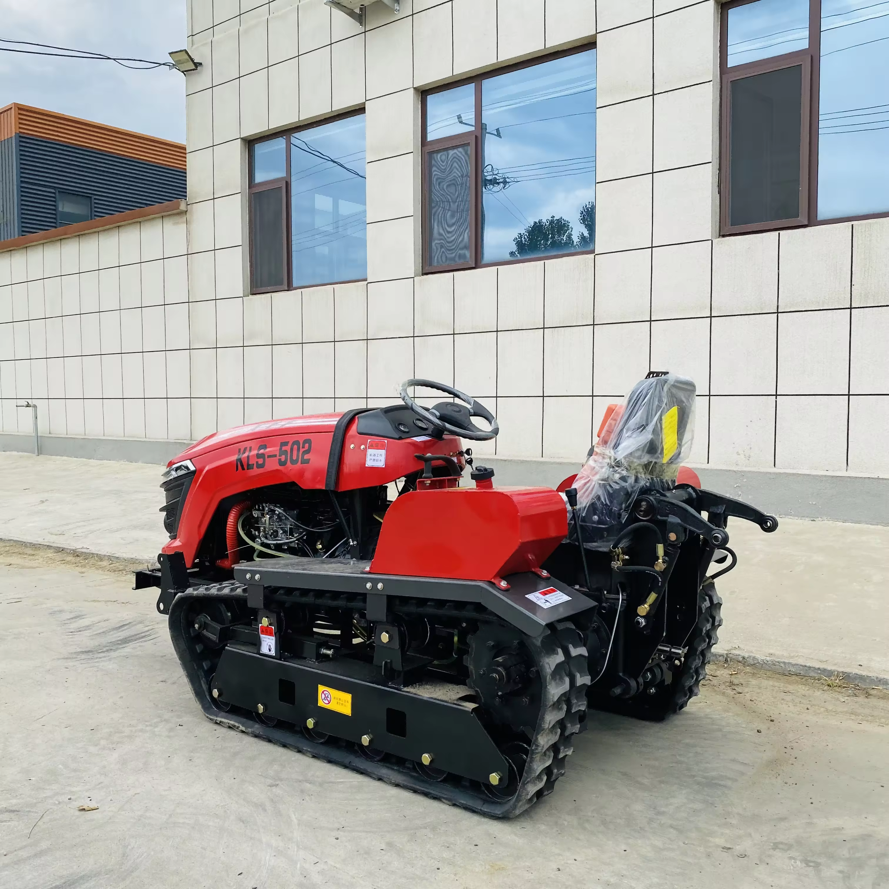 The crawler tractor provides superior traction, lower soil disturbance, and better slope stability compared to wheeled models. Its wide tracks distribute weight evenly, preventing the machine from sinking into wet or loose ground.